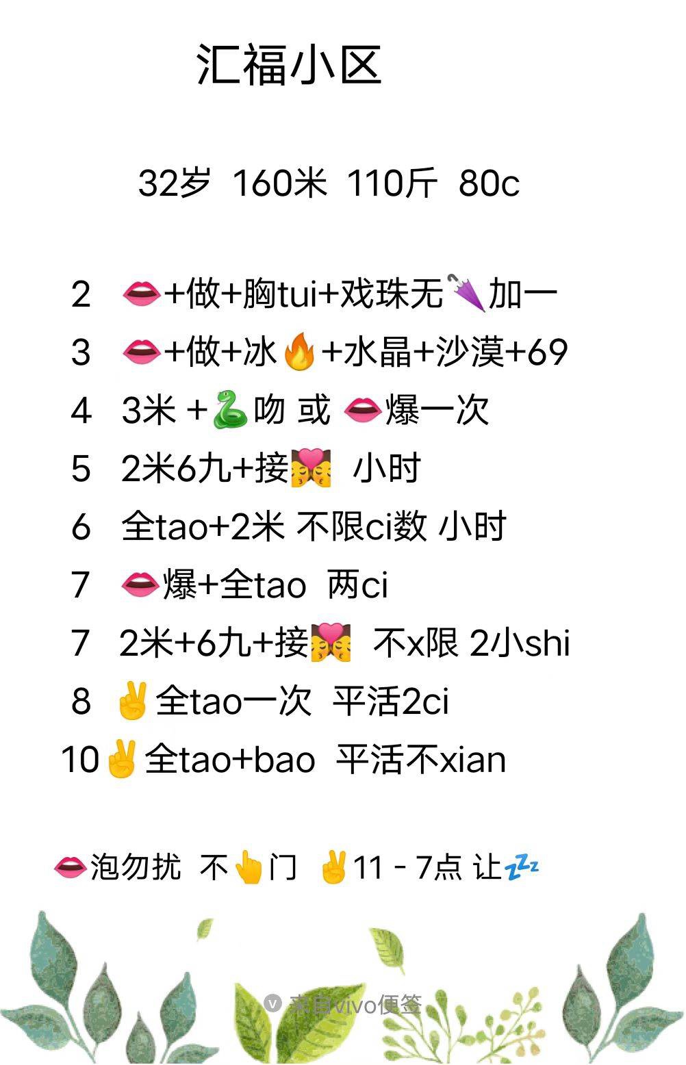 官方提示1、所有见面之前索取定金、红包、路费、保证金大部分都是骗子!2、引导加QQ群、下载APP、办卡大部分都是骗子!3、上门服务付费后禁止对方离开房间或加钱才做服务的,请及时止损,要求对方离开或退款!4、将联系方式直接写到帖子内容中的都是骗子!